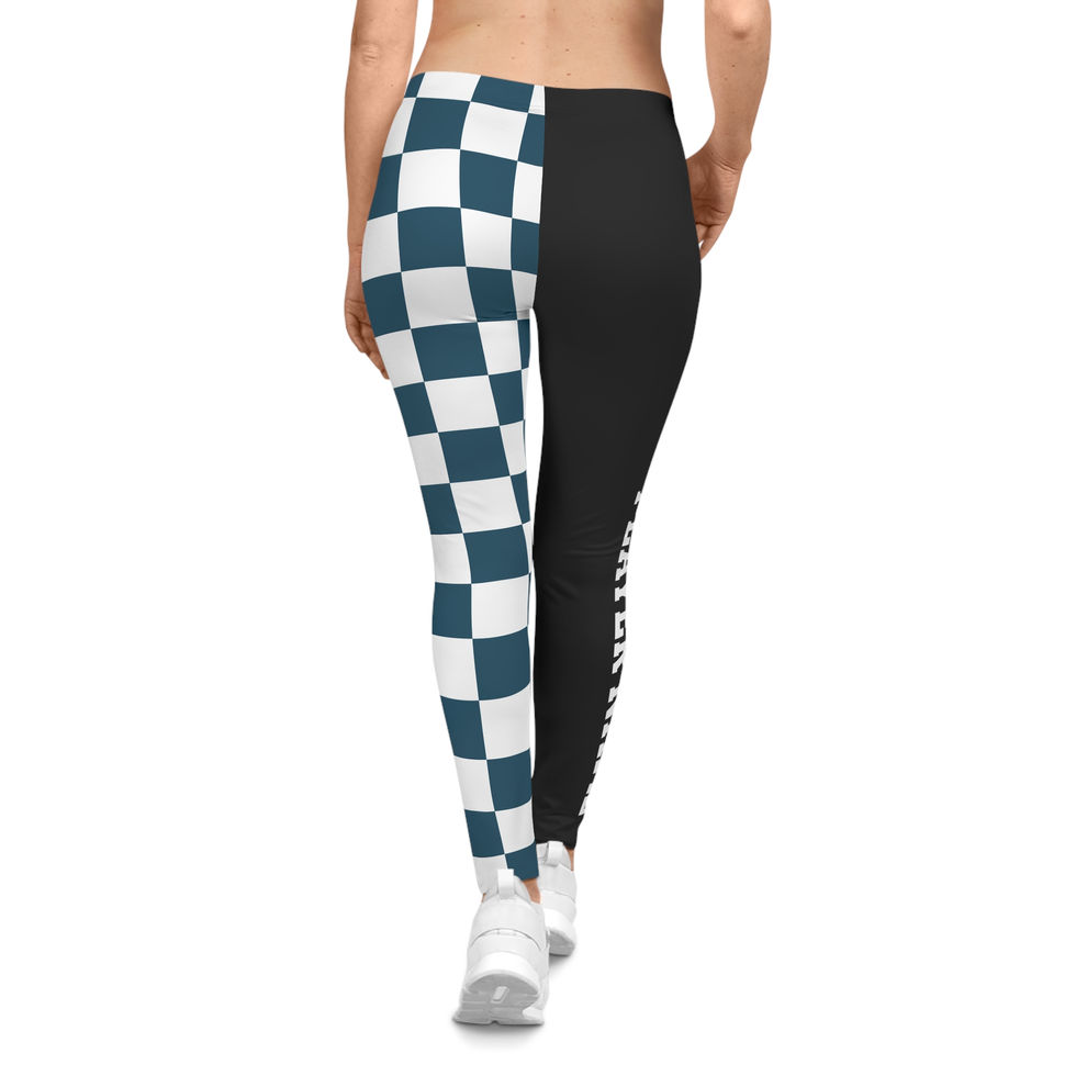 These leggings bring bold contrast and everyday ease together. The silky face and smooth stretch make them move with you, whether you're running errands, layering for yoga, or lounging with a coffee. The mid-rise elastic waistband sits comfortably without digging in, and the crisp printed side keeps the design lively wash after wash. Wear them with an oversized tee, a cropped sweatshirt, or under a long cardigan to let one leg pop while the other keeps things grounded. Product features - Mid-rise thin elastic waistband for casual, comfortable fit - Vibrant, full-color print with a silky finish on one side - Durable 83% polyester / 17% spandex blend with excellent stretch - Seam thread color matched automatically; runs true to size - Size and care info printed inside waistband; assembled in the USA Care instructions - Do not dryclean - Do not iron - Tumble dry: low heat - Do not bleach - Machine wash: cold (max 30C or 90F)